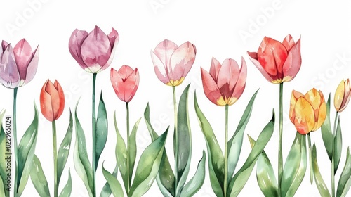 Floral Bouquet Illustration. Hand-Painted Watercolor Flowers with Tulips and Spring Flowers