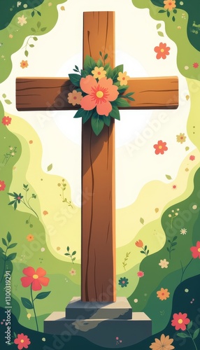 Floral cross in tranquil garden under afternoon light, simple elegance