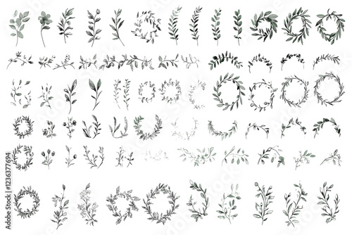 Floral dividers, vintage hand-drawn botanical borders, flowers, branches, isolated vector elements, wedding laurel wreaths