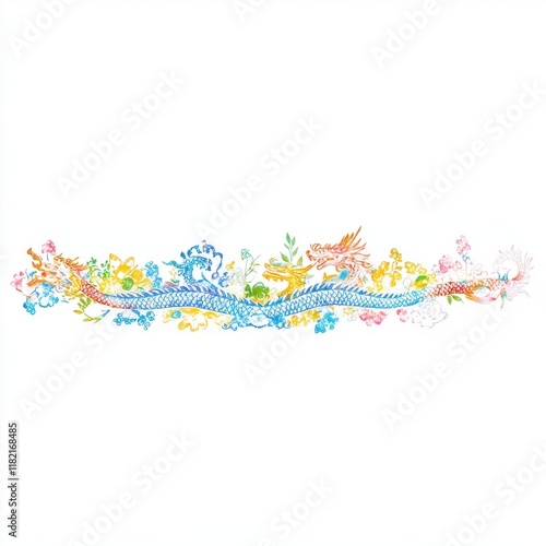 Floral dragon illustration with vibrant colors and intricate details, blending nature and mythical elements.