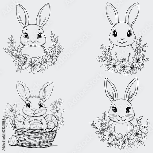 Floral Easter SVG Bundle, Easter SVG, Flower SVG, Happy Easter SVG, Hunt SVG, Basket Flower SVG, Cutting File For Cricut, T-shirt, Vector, Silhouette, Easter Egg SVG, Bunny SVG
