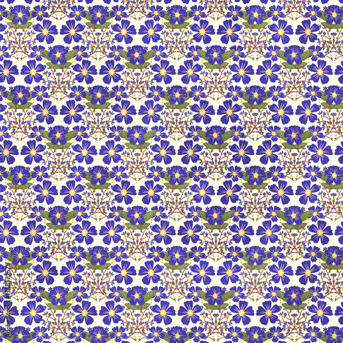 Floral fabric in purple and blue, swaddle, nature, forest, leaves, green