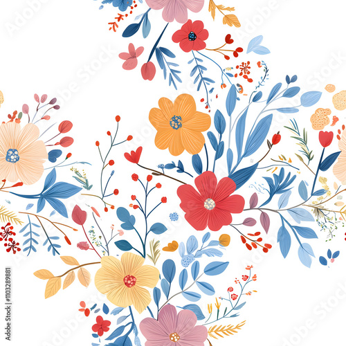 Floral flowers and beautiful colorful leaves wallpaper seamless pattern for interior decoration or background.