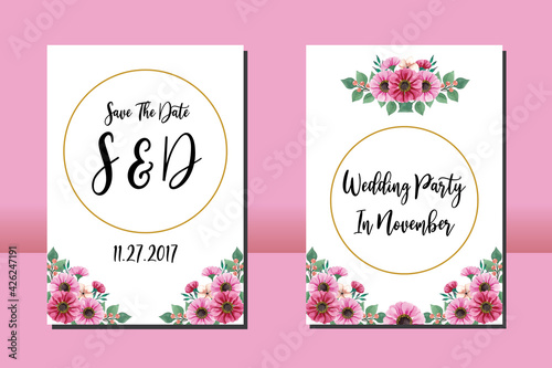 Floral Frame Wedding invitation, floral watercolor hand drawn Zinnia Flower design Invitation Card Template
