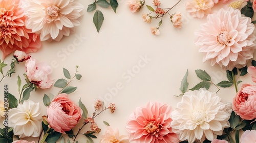 Floral Frame with Delicate Pink and White Blossoms. Minimalist Floral.