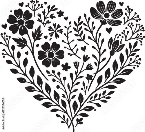 floral heart shape symbol silhouette vector art illustration isolated on transparent background