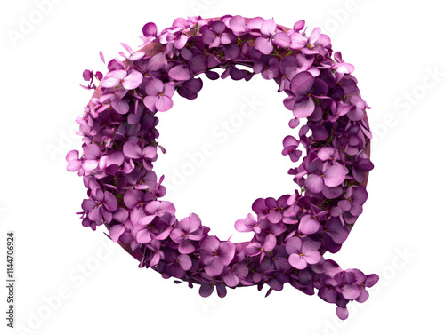 Floral Letter Q in Purple Petals Isolated on Transparent Background