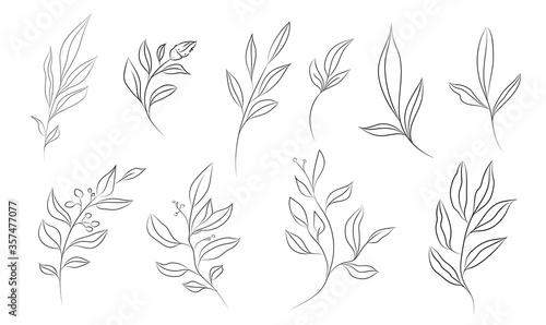 Floral line art clipart set. black and white illustration on white background. Ready for print. Can be used for logo, pattern, sticker, poster, print, fabric, textile