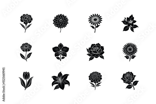 Floral nature themed flower icon collection vector set silhouette Vector illustration