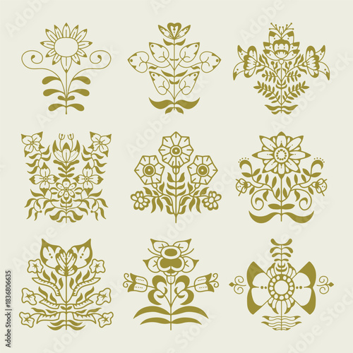 Floral Ornament Bundle, Scandinavian Folk Flower Vector