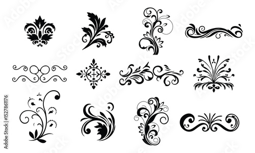 Floral Ornament Vector Set – Decorative Vintage Swirls and Elements in Black Silhouette Style