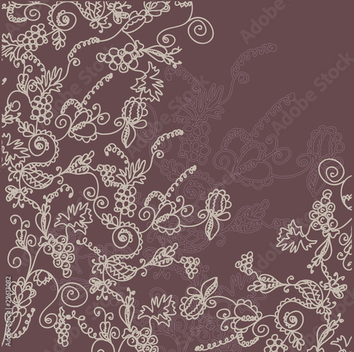 Floral ornate background with grape in dark colors