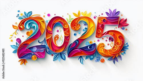 Floral pattern banner with number 2025 for new years growth colorful fun rainbow social share image design