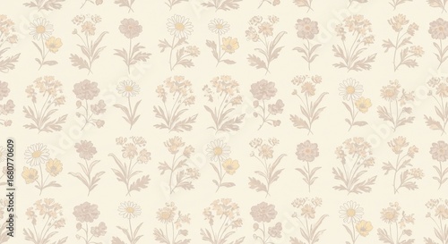Floral Pattern: Beige Brown and Yellow Flowers.