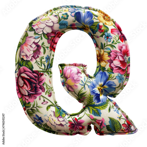 Floral Pattern Fabric Letter Q Isolated on Transparent or White Background, PNG