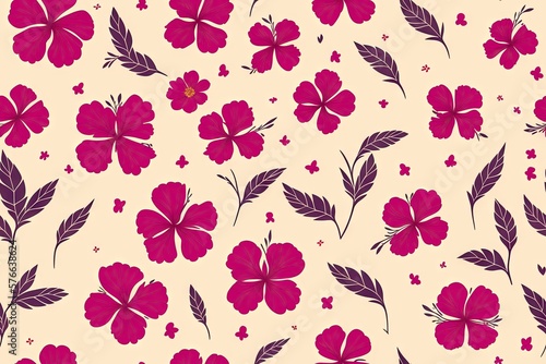 Floral pattern made of beautiful hibiscus flowers on pastel pink background, generative ai. Minimal style. Nature concept