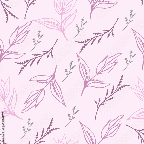 Floral pattern of flowers buds and twigs in pink-purple pastel . Delicate spring print. Vector seamless pattern in doodle style. Elegant floral ornament