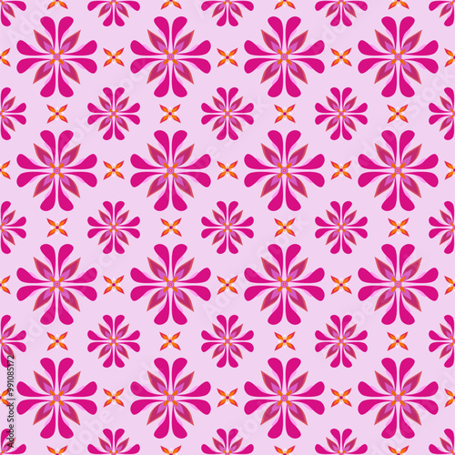 "Floral patterns with vibrant multicolors, featuring pink as the main tone for fabrics and wallpapers Elegant and charming design, adding a romantic and fresh atmosphere to any space"