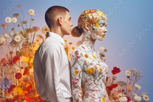 Floral Rhapsody. Abstract Collage - Woman's Profile Featuring Blooms