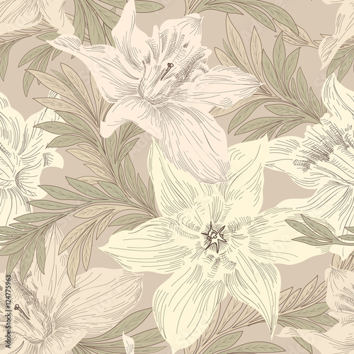 Floral seamless pattern. Flower doodle background. Floral engraved texture. Flourish wallpaper