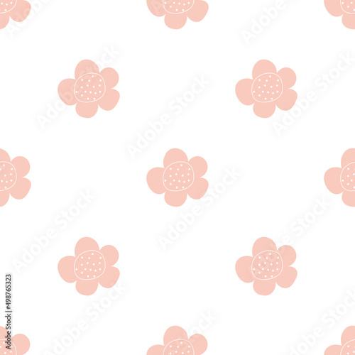 Floral seamless vector pattern with flowers. Spring flora. Simple hand-drawn kids style. Pretty ditsy for fabric, textile, wallpaper. Digital paper in white background