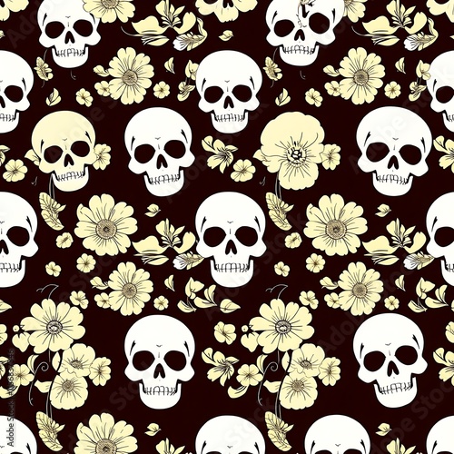 Floral Skull Seamless Pattern