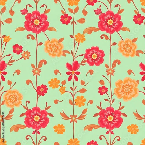 Floral Tapestry: A vibrant and intricate pattern of blooming flowers and swirling vines in a timeless design.