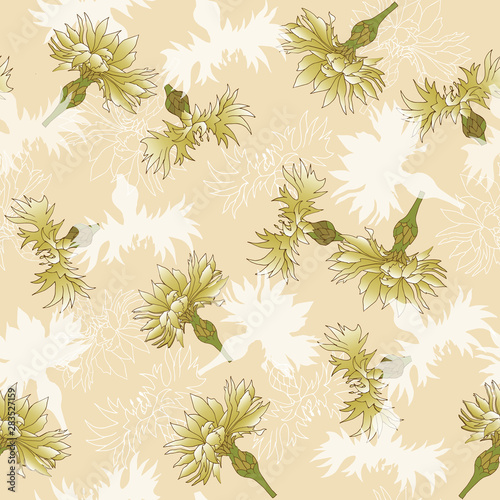 Floral vintage texture for fabric. Seamless ornament of flowers on a beige background.