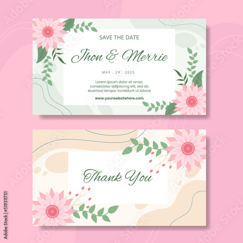 Floral Wedding Card Horizontal Template Flat Cartoon Background Vector Illustration