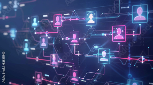 Flowchart on a digital screen illustrating the human resource process of identifying and targeting suitable candidates devoid of people