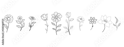 flower and leaves botanical line art floral element set for wedding card invitation design and frame brand vector logo