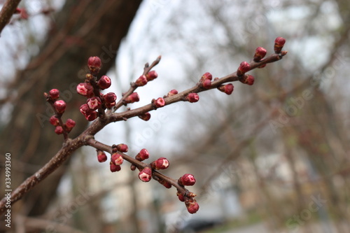 Flower buds swollen on fruit trees in early spring