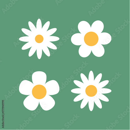 Flower chamomile vector icon. Cartoon camomile white retro spring floral icon design set