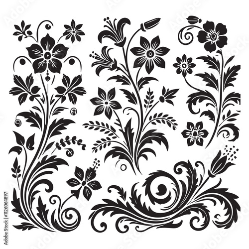 Flower decorative vector elements silhouette