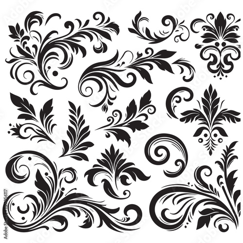 Flower design elements silhouette