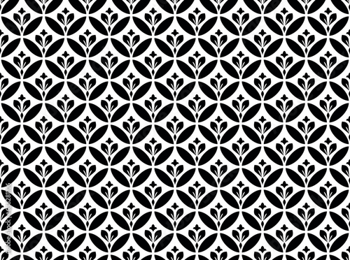 Flower geometric pattern. Seamless vector background. Black and white ornament