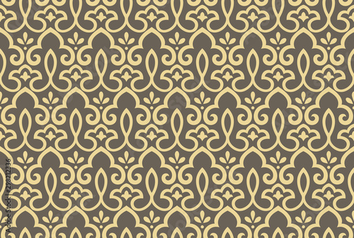 Flower geometric pattern. Seamless vector background. Gold and grey ornament