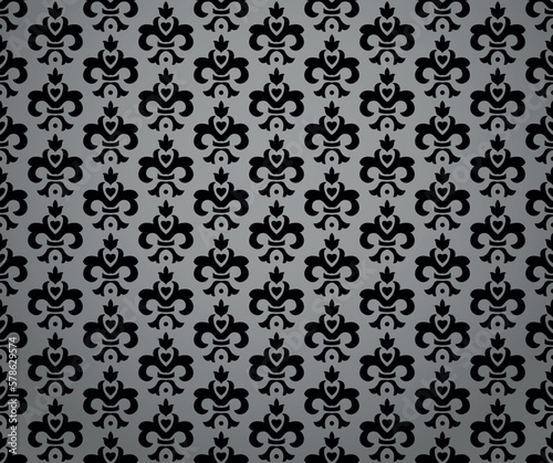 Flower geometric pattern. Seamless vector background. Gray and black ornament