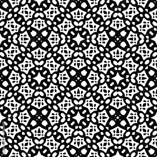 Flower geometric pattern. Seamless vector background. White and black ornament. Ornament for fabric, wallpaper, packaging. Decorative print.