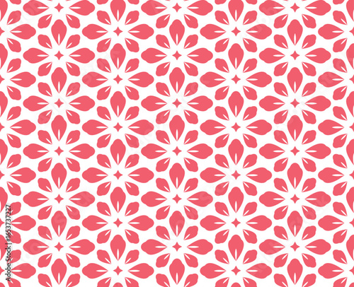 Flower geometric pattern. Seamless vector background. White and pink ornament. Ornament for fabric, wallpaper, packaging. Decorative print