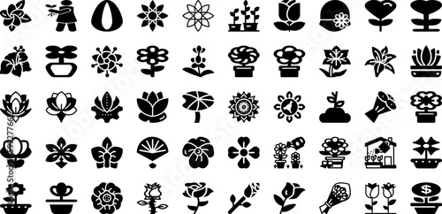 Flower Icon Set Isolated Silhouette Solid Icons With Vector, Nature, Summer, Flower, Floral, Design, Illustration Infographic Simple Vector Illustration
