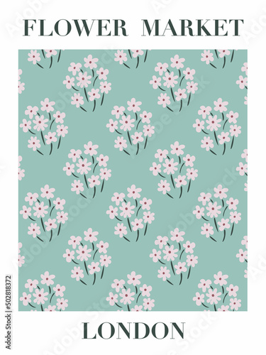 Flower market poster with meadow flowers. Printable wall art. Vector illustration.