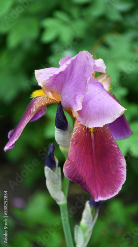 Flower purple bearded iris or Iris germanica (Latin Iris germanica) after rain