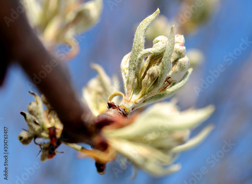 Flowering branch with buds pear tree