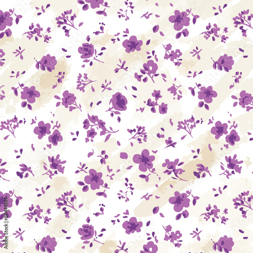 Flowers and flying leaves on Brush strokes wallpaper pattern