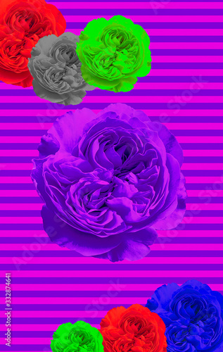 Flowers design wallpaper for smart phones and desktop. Minimal geometry and roses collage art