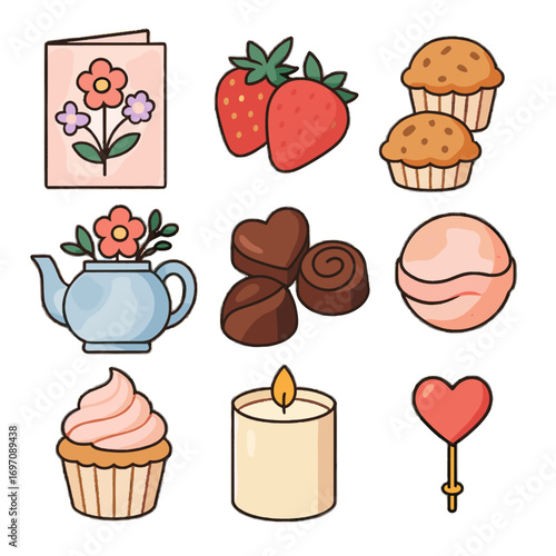 Flowers fresh card icon tea chocolate s frosting mother vector swirl day