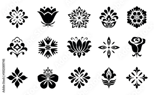 Flowers icon set. Flowers isolated on transparent background. Flowers in modern simple. Cute round flower plant nature collection. Vector illustrator