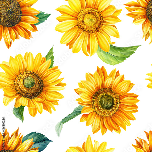 Flowers sunflowers on a white background, hand-drawn. Watercolor illustration. Floral design Seamless pattern.