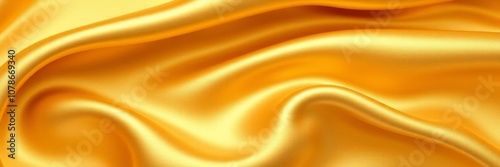 Flowing 3D golden metallic silk fabric abstract with smooth fluid lines and shimmering textures, smooth, lines